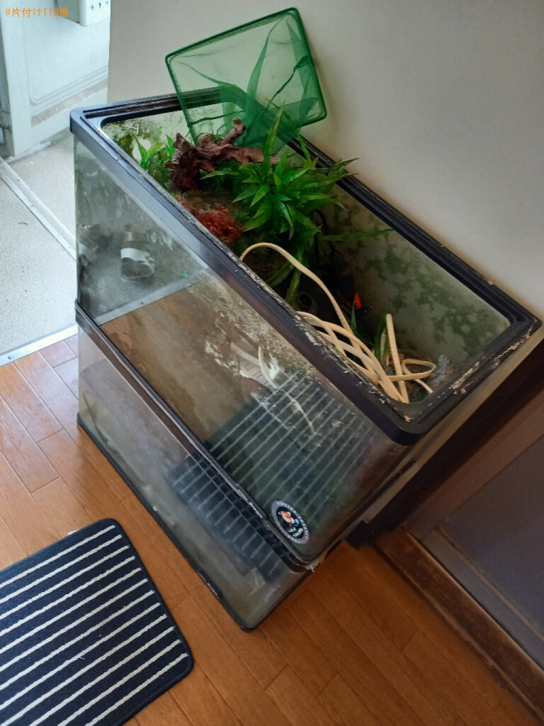 担当のコメント 水槽、水槽用品、机等の処理にお困りのお客様からご相談いただきました。見積り額がご予算内だったことがご依頼の決め手になったようです。片付け110番では、最短即日のお伺いが可能です。不用品がございましたらまたいつでもご相談ください。