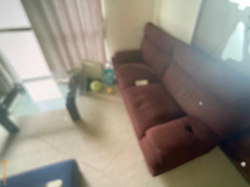 | 担当のコメント | ソファー、ハンガーラック、ガラステーブル等の処理にお困りのお客様からご相談いただきました。自治体の粗大ごみ回収日は決まっていてすぐには処分できないですよね。片付け110番では、最短即日のお伺いが可能です。不用品にお困りの際はまたいつでもご相談ください。 |